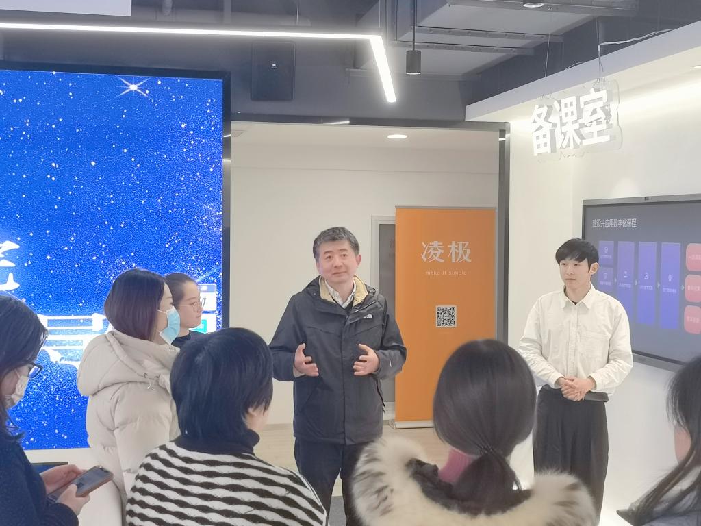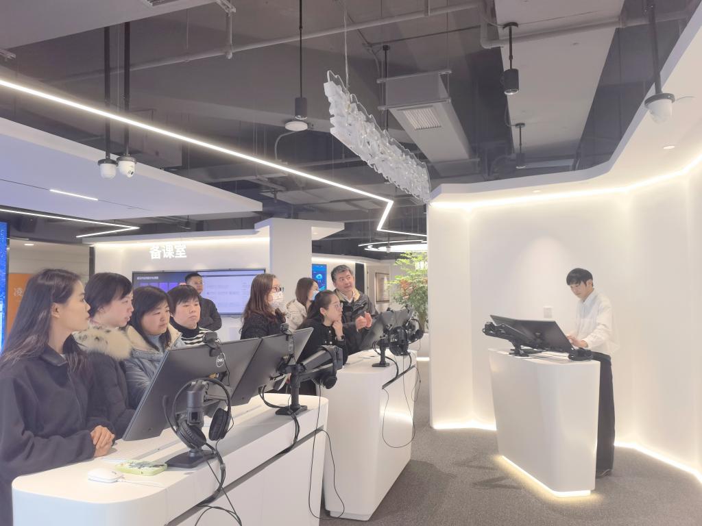 凌极公司是一家专注于教育信息化的高新技术企业,致力于建造智慧教育技术平台,擅长为外语学科教学提供智慧教学综合解决方案。外语学院教师一行受到了凌极公司董事长兼CEO沈嘉、客户经理杨海钢、上海华琪百诚软件有限公司负责人邵琪淼的热情接待,并在他们的带领下参观了凌极展厅的智慧语言实验室、备课室、专业实验室等,听取并体验了语言资源库、云桌面、云主机等产品的数字化功能,深刻体验到了在人工智能和大数据时代下,新型智慧教学环境的教学和管理流程。