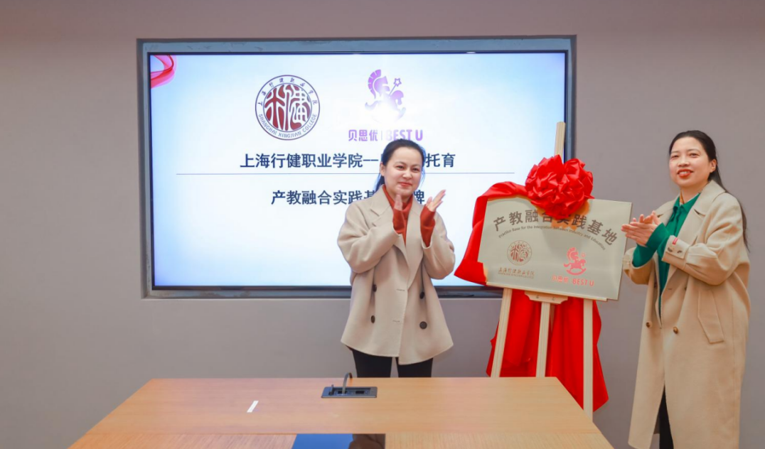 会上,双方共同签订了定向班合作育人协议与产教融合实践基地合作框架协议,并为学校与贝思优托育品牌共同成立的产教融合实践基地揭牌。