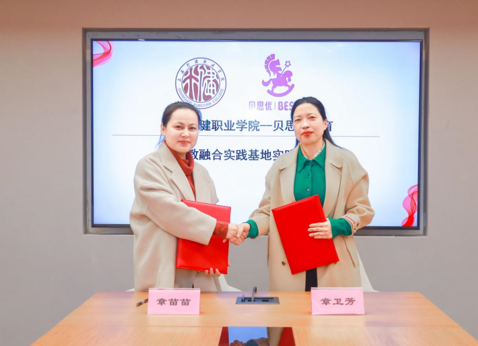 为贯彻落实《国家职业教育改革实施方案》、《国务院办公厅关于促进3岁以下婴幼儿照护服务发展的指导意见》和《健康儿童行动提升计划(2021—2025年)》等文件精神,近日,学校与上海堃苗教育科技有限公司进行校企合作签约。上海堃苗教育科技有限公司贝思优托育品牌首席执行官章苗苗、人事总监夏彩霞,上海行健职业学院副校长章卫芳、教育学院院长李娜、婴幼儿托育服务与管理专业主任潘太健参加了本次签约仪式。