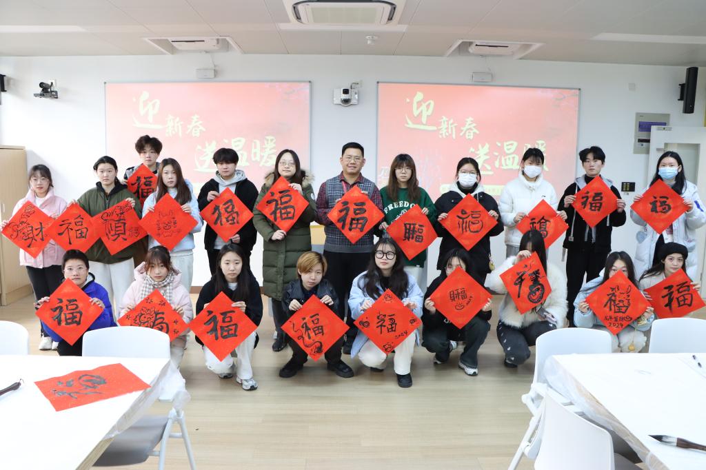 送温暖活动中,各二级学院精心准备了围巾、毛毯、保温杯等冬日生活用品。教育学院、外语学院和商贸学院特别为同学们组织了茶话会,通过互动小游戏,活跃茶话会气氛,各二级学院领导也积极参与同学们的座谈,了解同学们在校学习和生活情况,增进师生交流;创意学院结合专业特色,师生共同书写“福”字,传承了中华优秀传统文化,寄托了新春祝福;信息学院特别邀请学生代表薛开成通过故事讲演,生动展现了自立自强的大学生精神风貌,给现场的同学们留下了深刻印象。