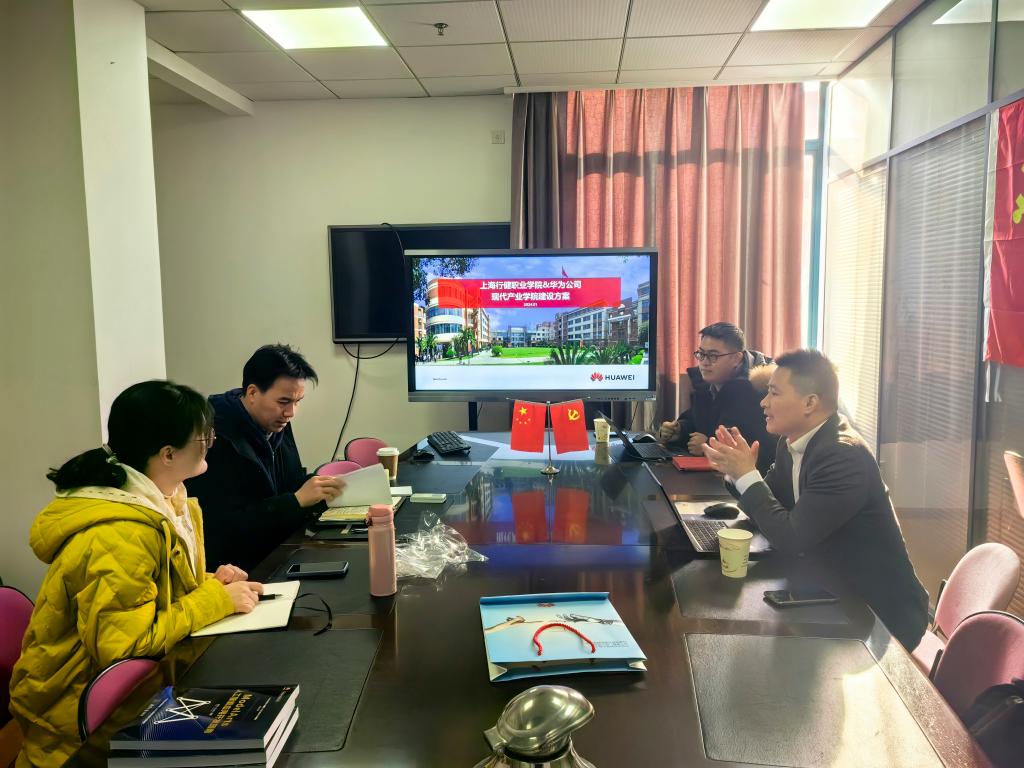 为了更快、更好地推进信息学院现代产业学院与高水平专业群建设,培养具有创新精神和实践能力的信息技术人才,1月25日,信息学院邀请华为技术有限公司上海政企院校人才培养代表袁玉强、华为全球培训中心教育解决方案经理宋晓翔来校洽谈校企合作事宜,信息学院院长陈品华、软件技术专业主任东苗、软件专业教师赵家贝参加此次会议。