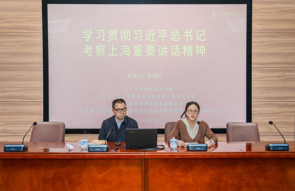 4月1日,学校邀请复旦大学马克思主义学院教授、博士生导师朱鸿召以“学习贯彻习近平总书记考察上海重要讲话精神 不断提升上海人民城市建设品质”为题,为学校党委中心组(扩大)作专题辅导报告。学校党委书记沈燕华主持。