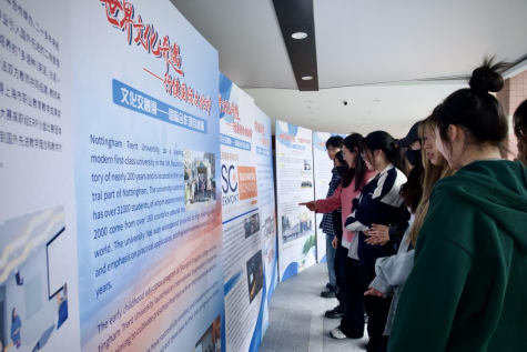 “文化交融展”通过展示当下学校与法国克莱蒙高等商科学校、法国亚眠商学院、英国诺丁汉特伦特大学等国际合作院校的办学成果,增进校内师生对当前国际化办学项目的了解。