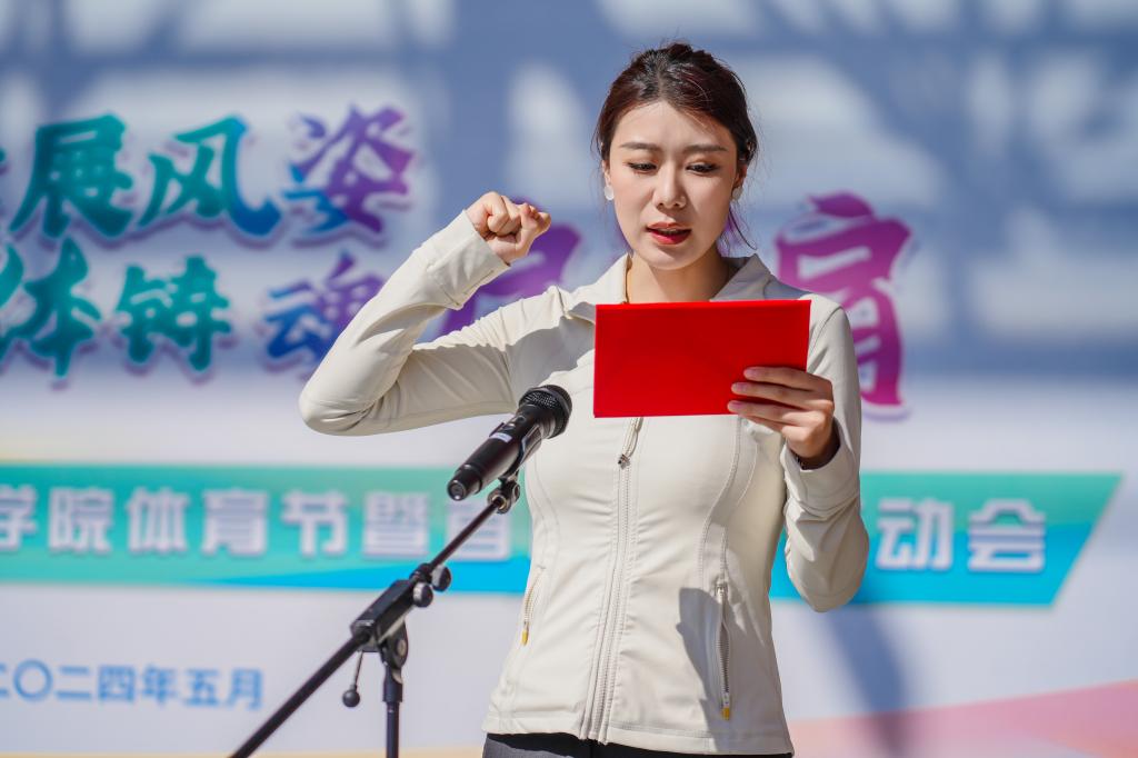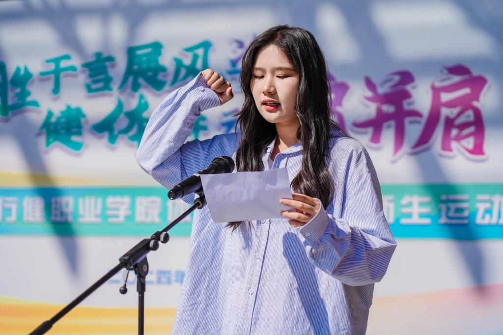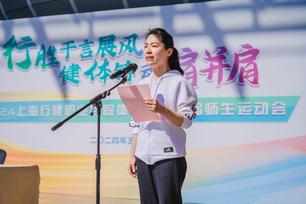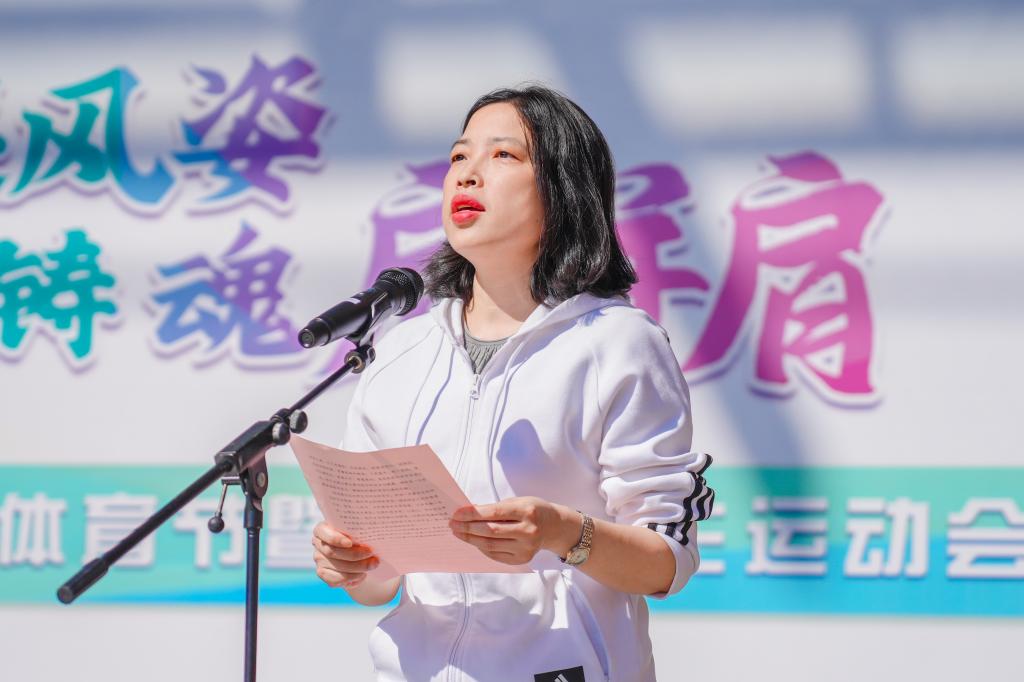 庄严的升旗仪式结束后,副校长、体育运动委员会主任章卫芳代表学校向筹办这次体育盛会的全体工作人员,各参赛单位的领队、教练员、运动员,以及全体裁判员们表示了诚挚慰问和衷心感谢,特别提出此次运动会是首届师生运动会,希望全体师生都能在此次运动会中感受体育的魅力、享受运动的快乐。她希望全体工作人员及裁判员忠于职守、热情服务、公正执裁,确保大会安全顺利运行。同时要求全体运动员要服从裁判、尊重对手,以高昂的斗志和顽强的精神,赛出风格、赛出水平,充分展现出行健人的精神风貌。