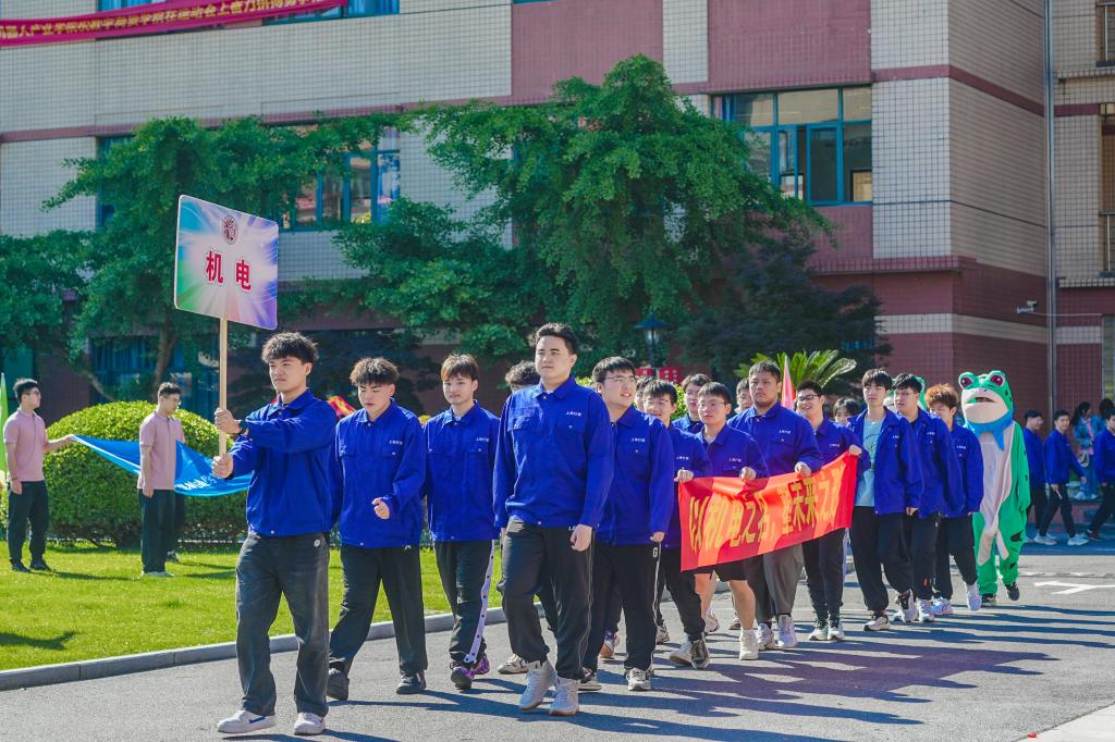在激昂的《运动员进行曲》中,由教职工组成的10支工会队伍和来自29个专业的学生运动员队伍依次入场。各专业及教职工方阵结合自身特点,充分展示了我校师生良好的精神风貌和对体育运动的热爱。