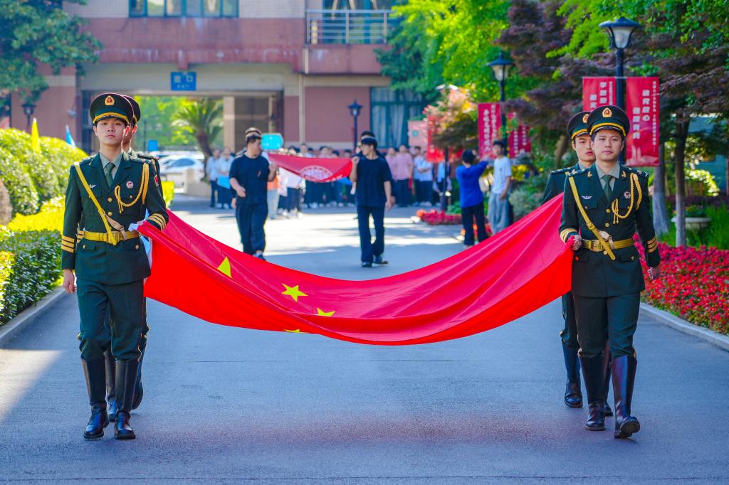 伴着昂扬的音乐,最先经过主席台的是由上海行健职业学院国旗护卫队组成的国旗方阵,他们以整齐的步伐、昂扬的斗志展示着国旗护卫队严谨求实、团结奋进的优良传统。