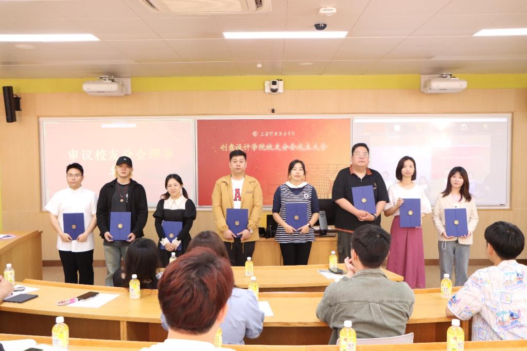成立大会第二项议程是推选校友分会理事会。党支部书记余宁向与会代表介绍了校友分会筹备情况,并代表筹备委员会提名首届理事会理事人选。经投票表决,到会校友代表全体通过《上海行健职业学院创意设计学院校友分会章程》和理事会名单。党支部书记余宁向当选理事颁发聘书。