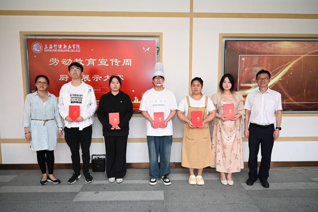 为在广大学生中大力弘扬劳动精神,帮助学生培养正确的劳动价值观,养成良好的劳动习惯,5月22日,由学生处、数字商贸学院和后保处联合举办的“劳动教育宣传周·厨艺展示大赛”顺利举行。学校党委书记沈燕华、校长黄群、党委副书记李越、副校长章卫芳、副校长顾斌以及相关部门的负责人出席活动,师生代表200余人现场观摩。