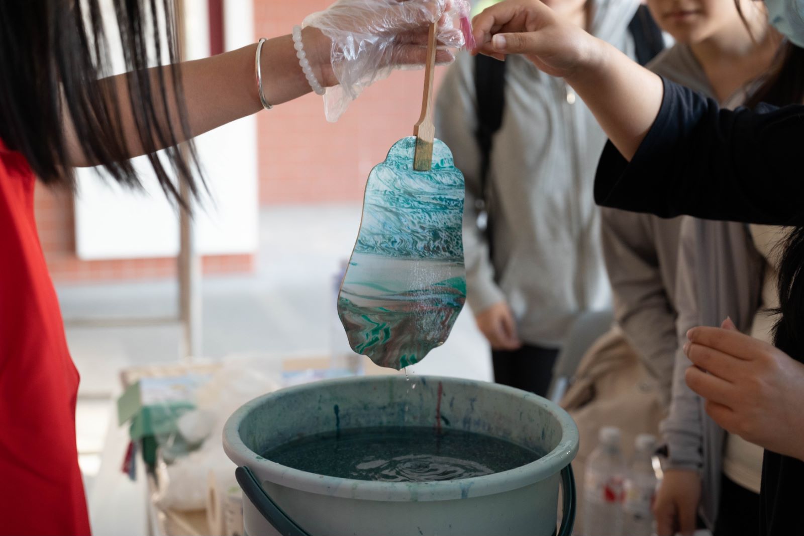 这场劳动美的盛会包括了漆扇制作、对弈、篆刻、糖画制作、编手绳、拓染、剪纸、风筝制作、活字印刷、书法十项中华优秀传统技艺。其中,漆扇制作是师生最喜爱的项目,师生共同参与漆扇制作,通过手工制作工艺品体验劳动美。活动中,学生充分挖掘个人兴趣爱好,开启创意的大门,激发创造力。