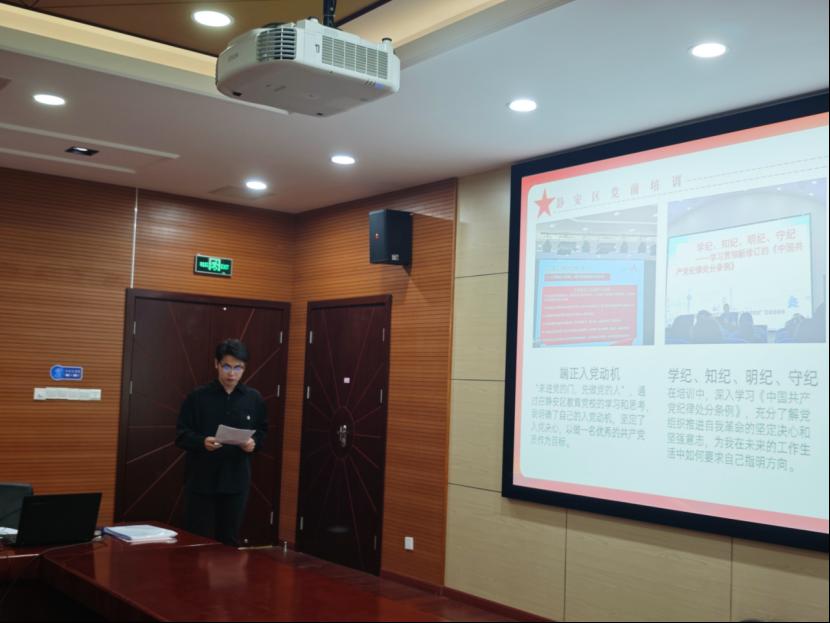 曹娜副部长首先对本期发展对象培训情况作详细介绍。15名参训学员在两个时间阶段,通过自主学习、集中培训方式,完成专题报告学习、红色实践基地参观学习、采访身边老党员、制作“读懂中国”微视频、结业考试等九项培训任务,深入感悟党的理论精神和实践精神,进一步端正入党动机,提高思想政治觉悟。此次培训的针对性和实效性较强,系统强化学员们的党性教育和政治淬炼,取得了良好效果。