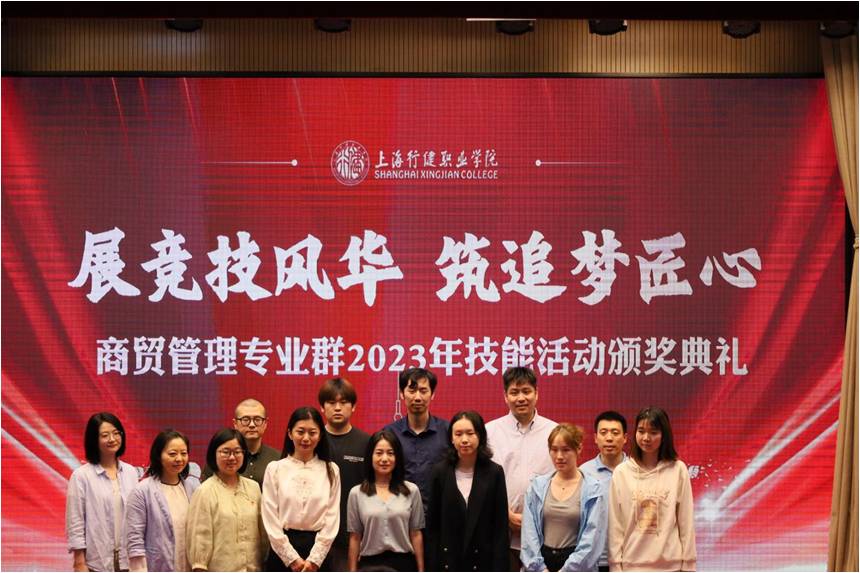 近日,数字商贸学院商贸管理专业群2023年技能活动颁奖典礼在我校成功举办。数字商贸学院院长孙天慧、数字商贸学院党支部书记谭可、上海信息技术学校商务管理系党支部书记胡小丹,上海宝尊电子商务有限公司运营经理武小茹、星巴克(上海)咖啡有限公司人事经理侯佩岚,上海澄穆实业发展有限公司教育培训部经理金佳佳、上海DP电商整体视觉创始人倪晟铠,梦想在线网络科技有限公司创始人陆兴荣等出席典礼。商贸管理专业群师生代表、上海信息技术学校电子商务中高贯通班级师生代表与2023年技能活动获奖学生代表也出席典礼,典礼由商贸管理专业群主任钟一杰主持。