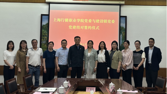 为深入学习贯彻习近平新时代中国特色社会主义思想和党的二十大精神,进一步促进党建与业务工作融合发展,6月11日上午,我校党委书记沈燕华、副校长章卫芳一行,前往崇明区建设镇,与建设镇党委举行党建结对共建签约仪式,共同开启政校企三方合作新篇章。建设镇党委书记陈群、党委副书记陈达、党委组织委员张冬莉等出席活动。