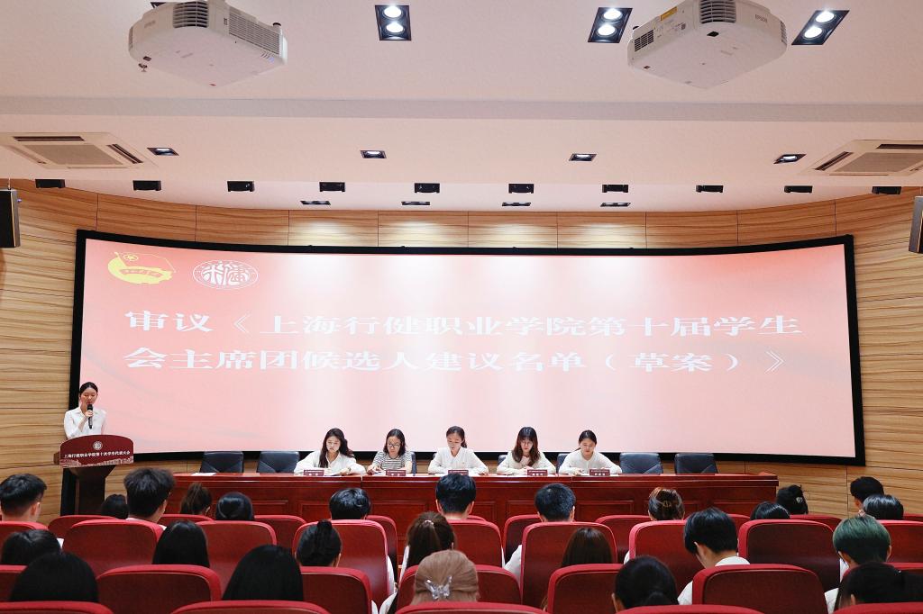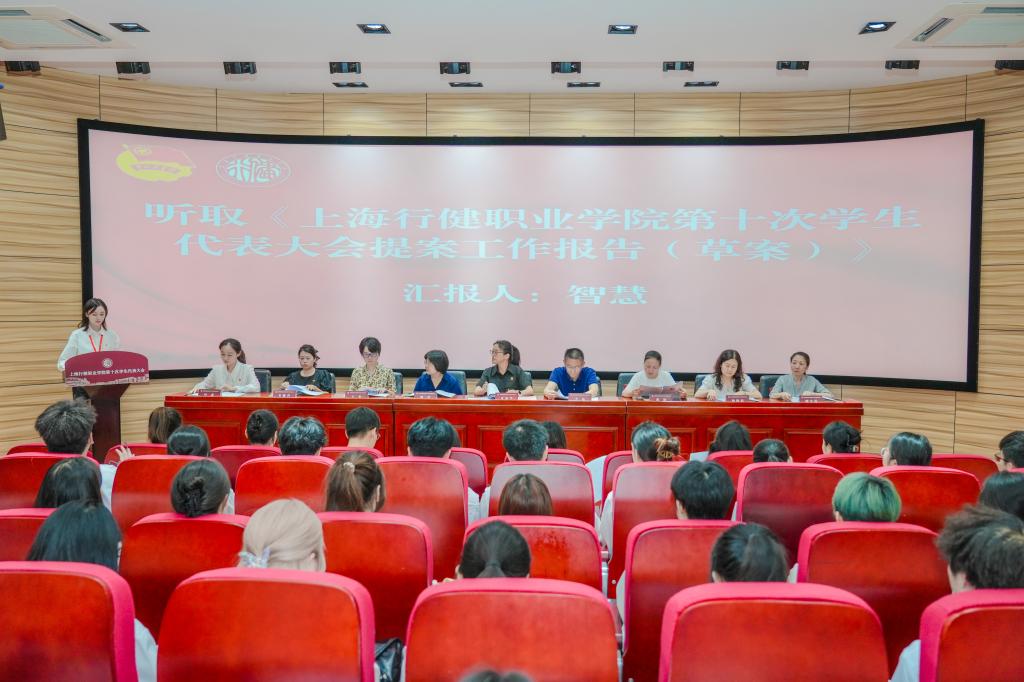 在第二次全体代表会议中,审议并通过了《上海行健职业学院第九届学生会工作报告》《上海行健职业学院第十次学生代表大会提案工作报告》《上海行健职业学院第十次学生代表大会选举办法》《上海行健职业学院第十次学生代表大会总监票人、监票人名单》《上海行健职业学院第十次学生代表大会常任代表会议代表候选人建议名单》《上海行健职业学院第十届学生会主席团成员候选人建议名单》。投票选举产生了13名同学担任上海行健职业学院第十届学生常任代表,陈章畴、余韵婕、范晨妮等3名同学担任上海行健职业学院第十届学生会主席团成员。学校第十次学生代表大会在慷慨激昂的团歌中落下帷幕。