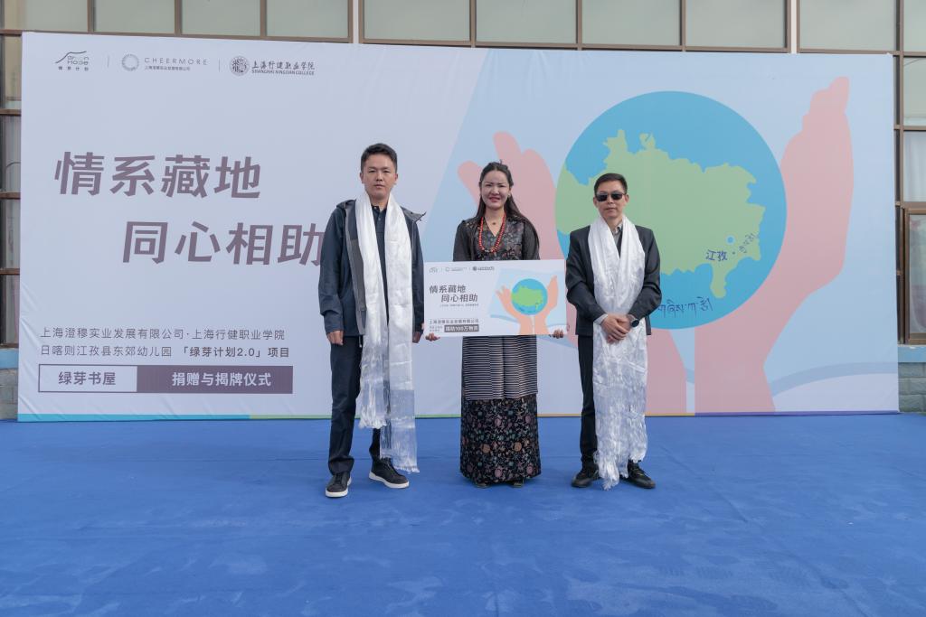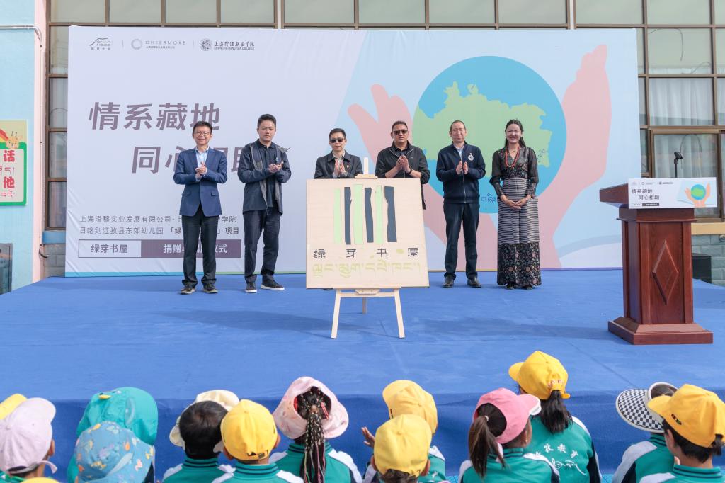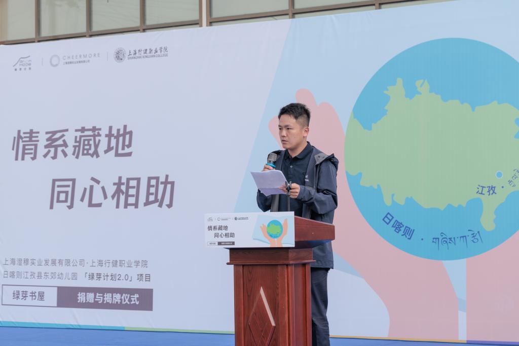 2023年11月,上海援藏项目西藏幼儿教师教学能力提升培训结业典礼在行健学院举行,行健学院面向江孜县幼儿园教师,在幼儿园管理水平、教师专业发展、科研教改等方面提供优质资源进行智力帮扶;澄穆公司承诺向西藏江孜县东郊幼儿园捐赠价值人民币100万元教学设备,建设“绿芽书屋”,进行改善教学和生活环境的硬件帮扶。经过半年多的调研、策划、施工和验收,象征产教融合和沪藏师生友谊的“绿芽书屋”于6月18日在西藏日喀则江孜县东郊幼儿园正式揭牌。