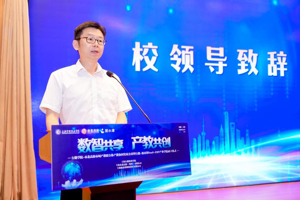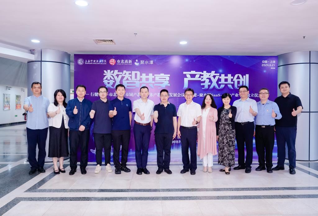 6月21日,行健学院-市北高新市域产教联合体协同发展会议暨行健-聚水潭SaaS-ERP产业学院成立仪式在上海行健职业学院举行。上海市教委职教处副处长马骏,上海市教委教育技术装备中心副主任赵晓伟,上海市北高新(集团)有限公司副总裁周晓芳,上海第二工业大学职业技术教师教育学院院长张军、上海信息技术学校校长葛睿、副校长任健,上海市商业学校副校长金南辉、上海市静安区成社教科科长金琪,上海市物联网行业协会秘书长潘才君等领导出席了会议,上海行健职业学院校长黄群代表学校参会。联合体会员单位代表30余人参加大会。会议由上海行健职业学院教务处处长公晨主持。
