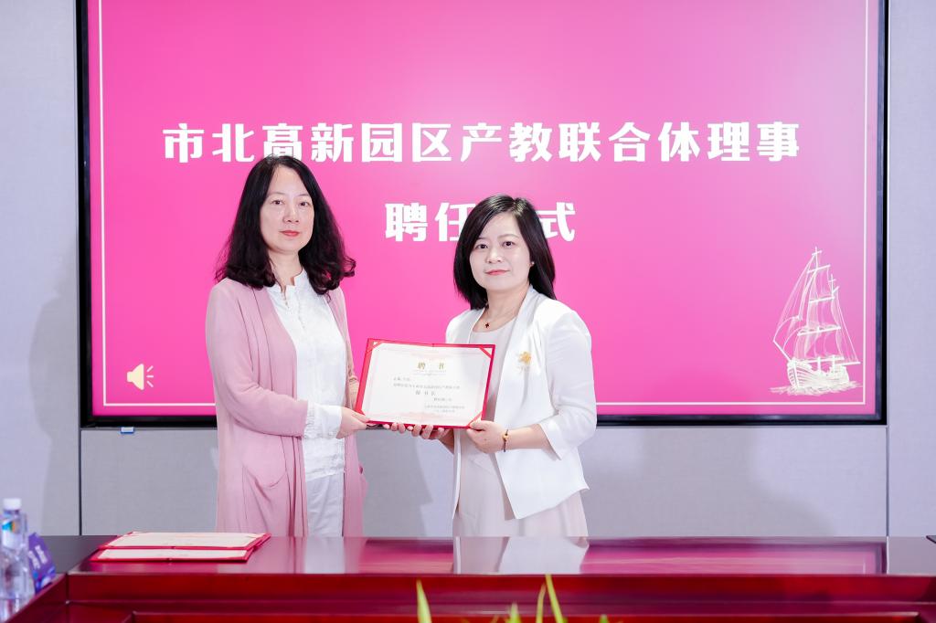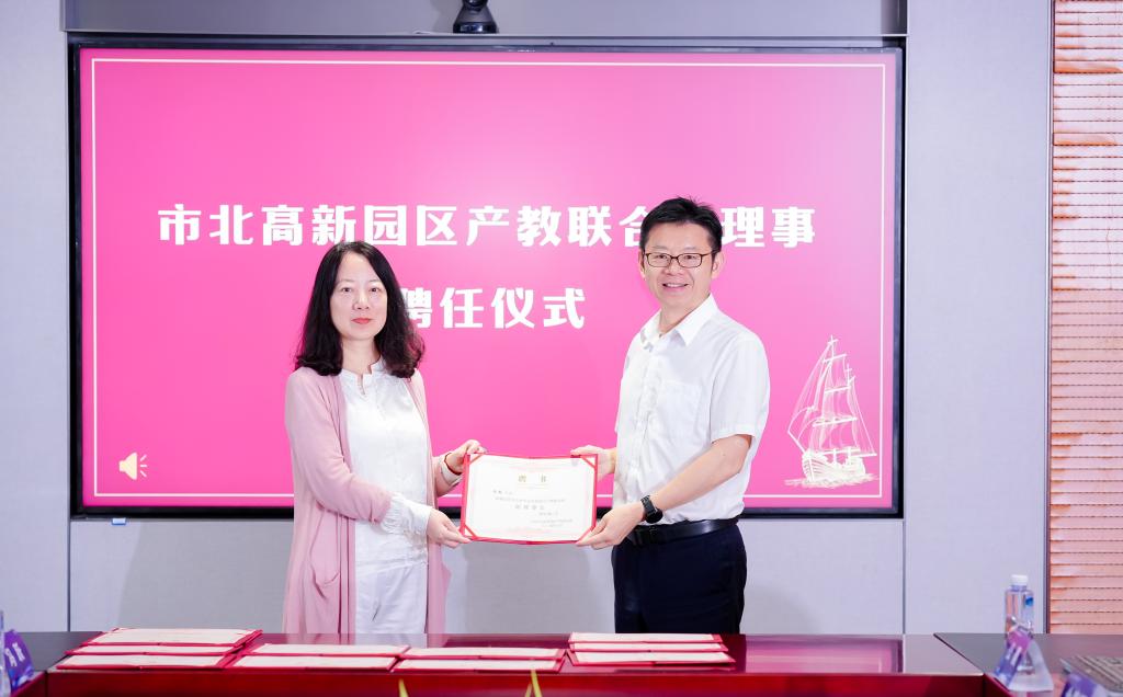 会后举行了上海市北高新园区产教联合体理事会,会议审议通过了《市北高新园区产教联合体理事会章程(草案)》,与会领导为市北高新园区产教联合体理事会成员颁发聘书。同济大学职业技术教育学院副教授李鹏以《职业教育市域产教联合体建设的政策逻辑和实践反思》为题与在座嘉宾交流研讨。