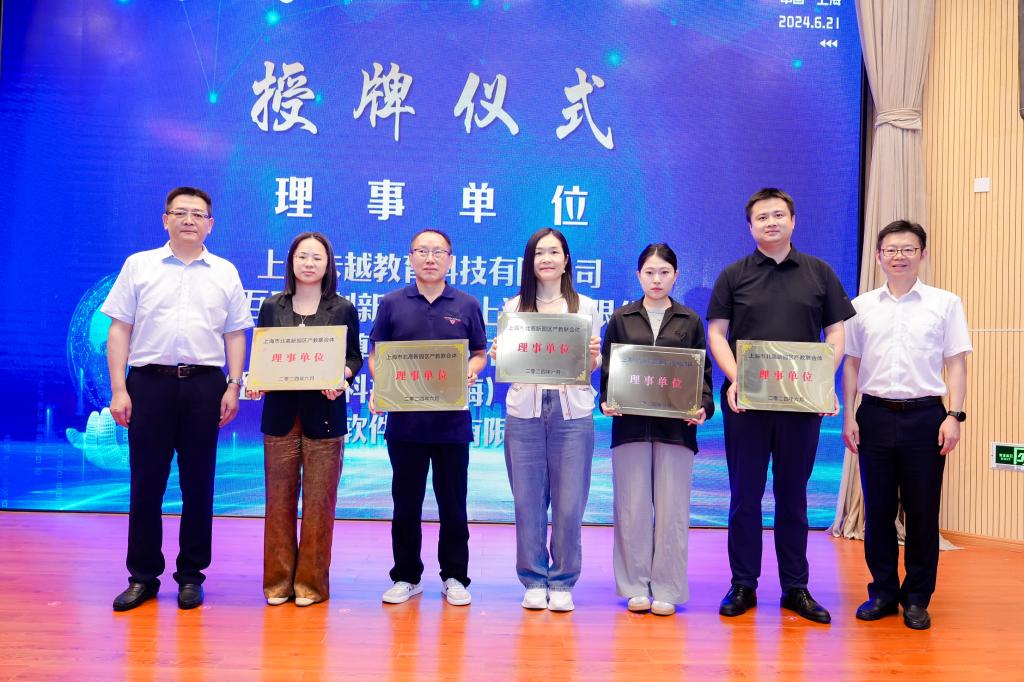 大会现场举行了“上海市北高新园区产教联合体”揭牌仪式。与会领导分别为理事长单位、副理事长单位、理事单位授牌。