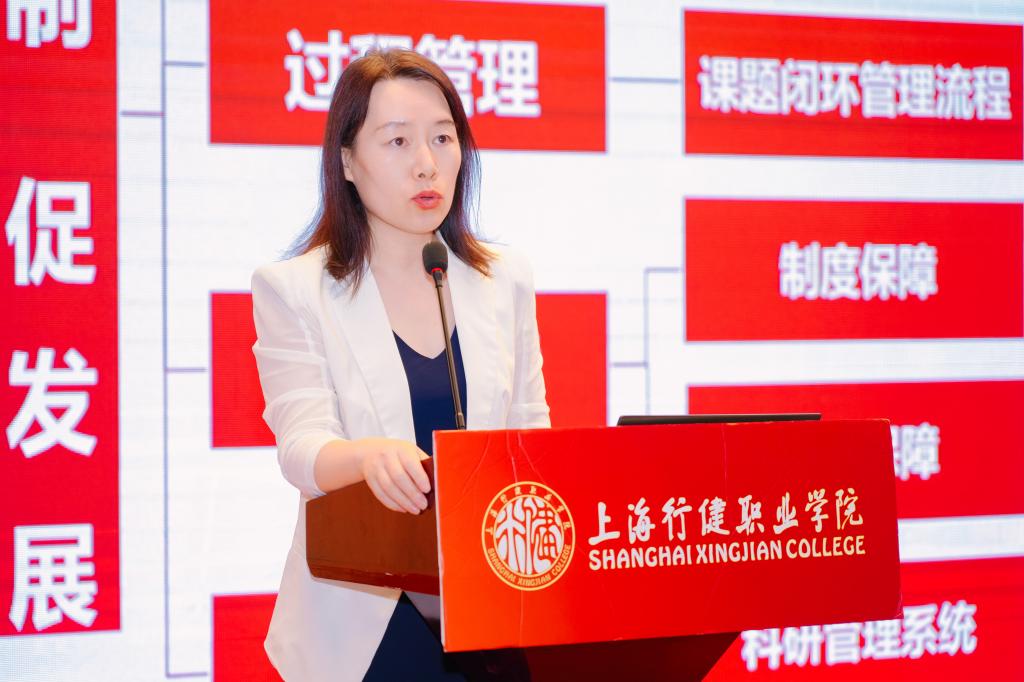 科发处处长杜君英以“精细化管理服务推进学校科研高质量发展”为主题回顾总结了学校在本学期完成的重点项目,并就下一步重点工作进行了部署。她指出,本学期我校科研氛围浓厚,科研成果丰硕,多位教师的各类科研项目百花齐放,多个项目获得上级部门立项支持。