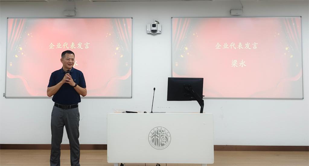 随后,上海泓江梁永总经理上台致辞。他提到,RPA技术作为当前企业数字化转型的重要工具,具有广阔的市场前景和应用空间。商务数智化产业学院和上海泓江信息科技有限公司一直致力于RPA技术的研发和应用,梁永总经理希望通过新学期的订单班,能够培养出一批具备RPA技术能力的优秀人才,为企业的发展注入新的活力。