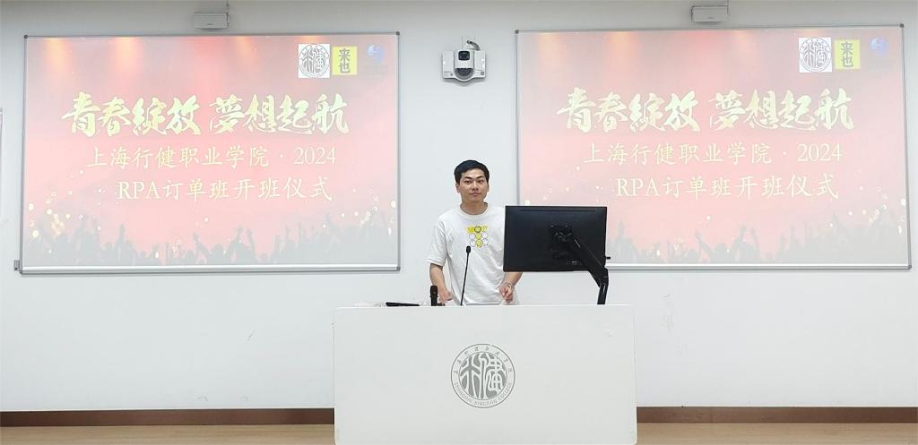 开班仪式上,本次订单班的班主任胡俊杰老师为同学们介绍了订单班的安排。他向同学们详细介绍了RPA订单班的相关事项,总结了RPA前三届订单班的成绩与经验,介绍了未来产业学院和RPA订单班的项目计划。通过胡老师的详细介绍,同学们对即将开始的课程设置、教学安排和实践环节等方面的内容有了更加清晰的认识。胡老师还鼓励同学们积极参与课堂讨论和实践操作,不断提升自己的技能和素养。