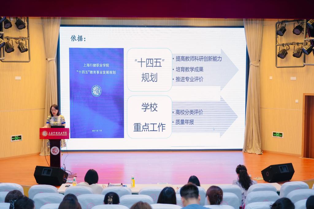 科研与发展规划处处长杜君英结合学校“十四五”教育事业发展规划,从学校科研工作、教改项目、专业群工作、分类评价、质量年报五个部分向全体任课教师作工作汇报,并提出学校下阶段科研发展的思路与目标,期望全体教师同向同行,合力合拍,共同成长,共促发展。