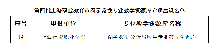 近日,上海市教育委员会发布《关于公布第四批上海职业教育市级示范性专业教学资源库立项建设名单的通知》(沪教委职〔2024〕32号),我校数字商贸学院“商务数据分析与应用专业教学资源库”顺利入选。