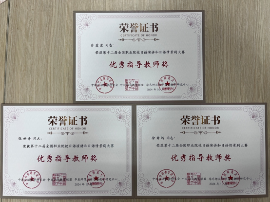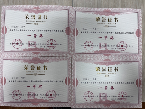 我校外语外贸学院应用日语专业在专业主任张萱萱的带领下,经过激烈的角逐,22级应用日语专业雷依凡、刘愉奇、李可靓、徐逸韬等4位同学获得了团体赛一等奖第一名,程飞同学获得了个人赛二等奖第二名,张萱萱、张世青、徐静远三位老师获得了优秀指导教师奖,上海行健职业学院荣获优秀组织奖。
