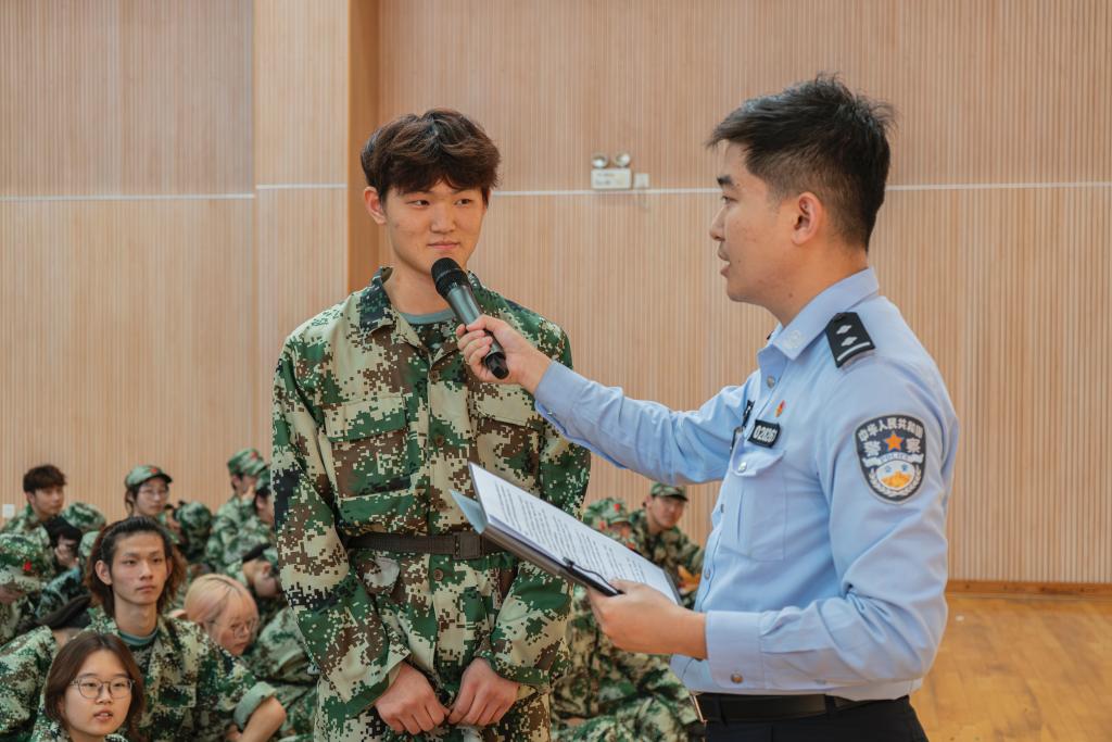 本次活动邀请了静安分局彭浦镇派出所、江宁路派出所、静安区交警支队的警官,从国家安全、网络安全和出行安全三大方面向新生科普安全知识,要求同学们遵守社会公德,提升个人美德,并通过视频案例示警,敲响安全警钟。活动现场,警官们通过生动的情景小短剧为新生科普日常生活中的网络诈骗陷阱,不仅让同学们了解新兴的反诈手段,知晓应如何保护个人安全、出行安全,更帮助他们提升了安全防范意识。