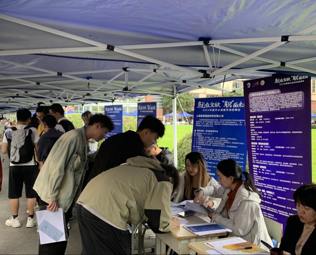 10月25日,我校联合静安区退役军人事务局、静安区人力资源和社会保障局、电力协会、市北高新园区联合举办2024年秋季校园大型招聘会。静安区总工会党组书记许俊,静安区退役军人事务局党组书记郁霆,静安区退役军人事务局副局长兰富奇,静安区人力资源和社会保障局副局长徐俊,上海市电力工程行业协会秘书长袁霞,上海市电力工程行业协会副秘书长兼培训部主任陈曦,上海市终身教育学分银行管理中心常务副主任陈海建,我校校级领导、各二级学院负责人莅会。上海市教育电视台和上海教育报社总刊《成才与就业》杂志社全程跟踪报道。