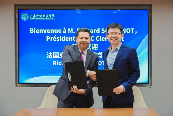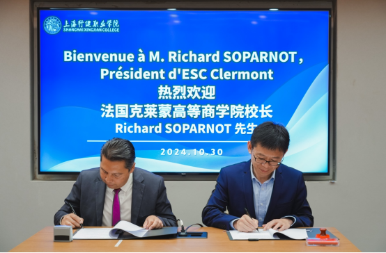 10月30日下午,法国克莱蒙高等商学院与上海行健职业学院成功举办了座谈会暨签约仪式,进一步深化中法教育合作。法国克莱蒙高等商学院校长Richard Soparnot教授,上海行健职业学院黄群校长、章卫芳副校长及校方相关人员参加了本次活动。