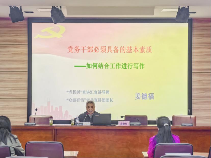 “写作要解决的不是写的问题,而是如何端正思维方式和工作方式的问题。”姜德福教授如是说。他立足善于抓住问题的写作基本功,以当前党务干部材料写作中存在的模式化、公式化等“通病”问题为导向,强调要树立正确的写作理念,并用自己曾在《解放军报》《转业军官》等媒体上发表的文章作为实操案例,从“六个关系”“三个抓手”“四个出新”等方面指导党务工作者如何走好“工作——写作——工作”一体化路子,如何通过文章写作讲好“中间道理”。正如近日习近平总书记给“老杨树宣讲汇”全体同志回信中写的那样,将党的创新理论和人民城市理念带到基层群众中,带动更多市民深入践行人民城市理念。年迈八十的姜德福在此次写作专题培训中传授的不仅是智慧和经验,更体现了他的学术追求和工作热情。整个讲座层层递进、深入浅出,思想气息浓厚,精神斗志昂扬,就像“老杨树”精神那样,挺拔高大、向上生长。