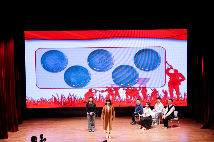在汇报环节,我校党委成员、工会主席、统战部部长钱慧懋,紧扣“一心一质一艺”档案育人的主题,高度凝练展示了学校在档案德育工作中的亮点与成效。她围绕“秉承教育初心,传承立德之道““涵养匠心品质,塑造工匠人才”“培育职业技艺,深植美育之根”三个方面,展示了学校立足档案育人特色,深度挖掘档案资源的各种举措。她提到,学校通过师德师风建设月活动和《陈鹤琴》大师剧的创作,寻找教育家精神的力量,提升师生职业素养;积极探索专业技能培养与思政教育深度融合的新路径,试点推行“学生工匠档案制度”,全面记录学生成长轨迹,有效激励学生在反思与提升中塑造专业素养和职业道德;通过“四位一体”的艺术教育普及,结合静安红色文化底蕴,引导学生利用专业技艺开展艺术创作,提升学生的艺术综合素养。展演环节,我校学生表演了原创舞台剧——《瓷上红影》,诠释了获得评委会特别奖的红色静安耀州窑瓷刻作品的创作历程。