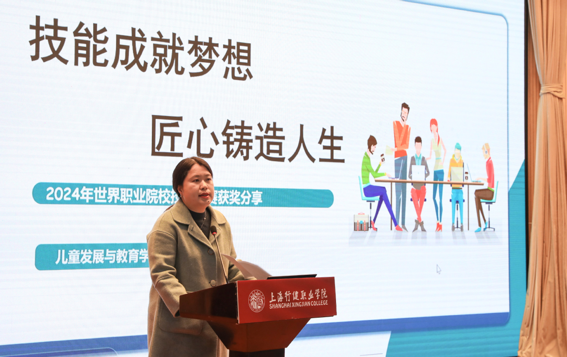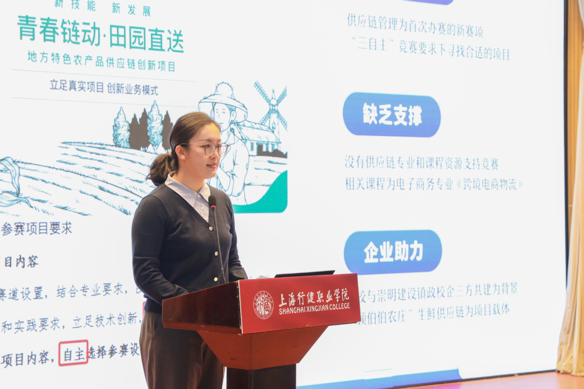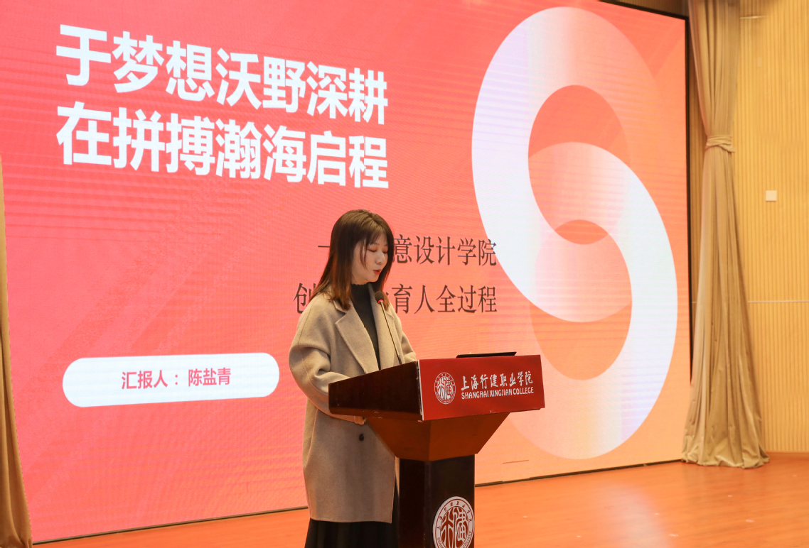 教师代表发言环节,商贸学院杜双双、教育学院顾晨华、外语学院陈曌、创意学院陈盐青四位教师代表分别分享了在产教融合、赛教融合、学生成长、创新创业育人方面的经验和思考。