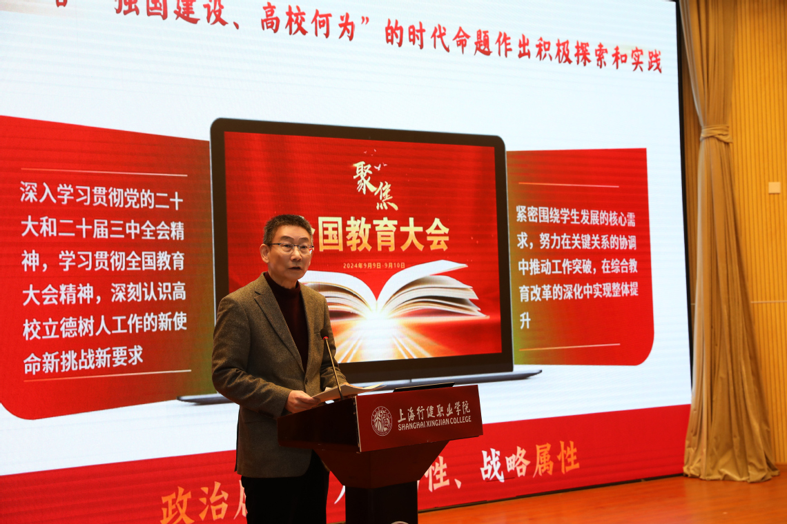 1月16日上午,上海行健职业学院召开2024学年第一学期期末教工大会,总结过往谋篇启程,砥砺前行筑梦远航。会议由黄群校长主持,全体教职工参会。