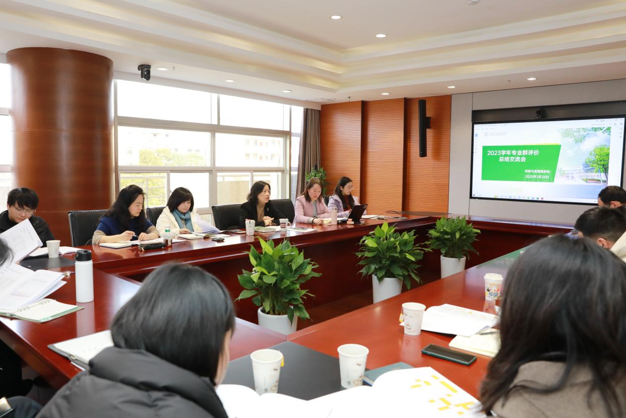 锚定规划深化评价,总结成效聚力前行。2月26日,学校在明德楼1304室召开2023学年专业群评价工作总结交流会。副校长章卫芳出席会议并讲话,五个二级学院院长和七位专业群主任参会,会议由科发处处长杜君英主持。