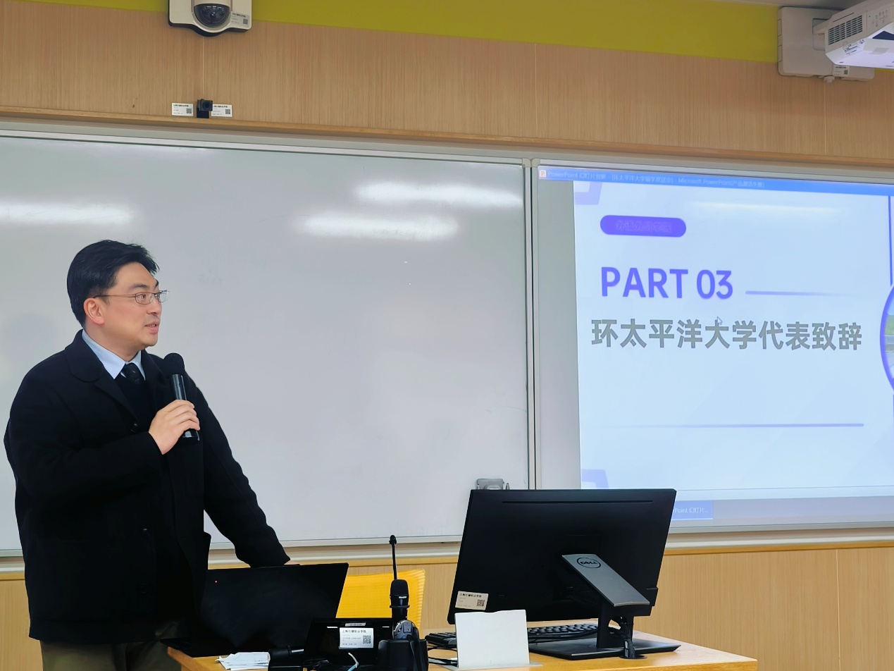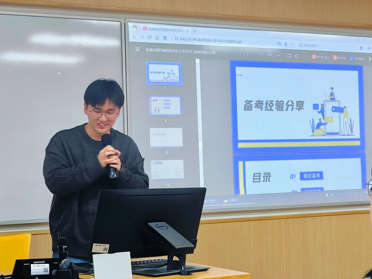 在“同学经验分享”环节,葛政同学通过自身考入环太平洋大学的经历,从笔试备考、口试备考、材料办理三方面展开分享。他建议学弟学妹“善用学习平台积攒日语经验与答题技巧”、“多与老师进行模拟对话建立口语自信”,并在现场详细介绍了对于赴日留学的材料准备,表达了对于两校老师的真挚感谢。