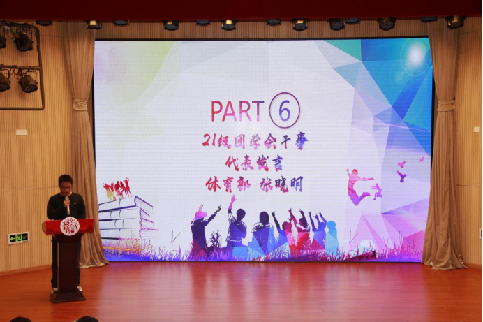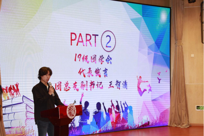 新一届学生会副主席段明晶代表新一届团学会部长发言,他表示在今后会秉承信机系团学会优良传统,创新工作模式,优化系部团学活动,争创活动品牌。只争朝夕,不负韶华,以自己的活力热血为信机系团学会添砖加瓦。