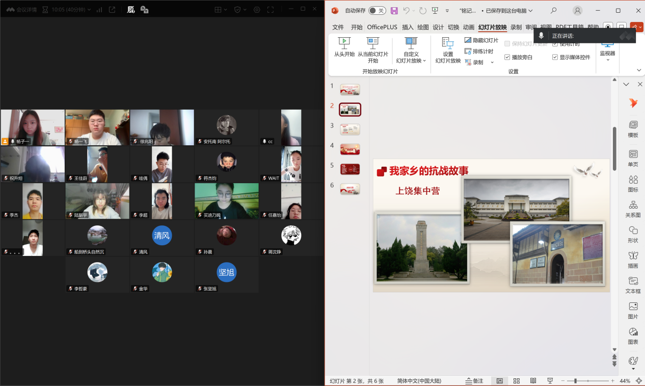 会上,各班辅导员还组织学生观看九三阅兵,《八佰》《血战台儿庄》等抗战题材影片。开展“我家乡的抗战故事”线上征集活动、红廉故事分享等,组织同学线上云参观“中国人民抗日战争纪念馆网上展馆、等线上虚拟展厅”,进一步深化家国情怀,传承抗战精神,同时也激励了同学们技能强国的决心。